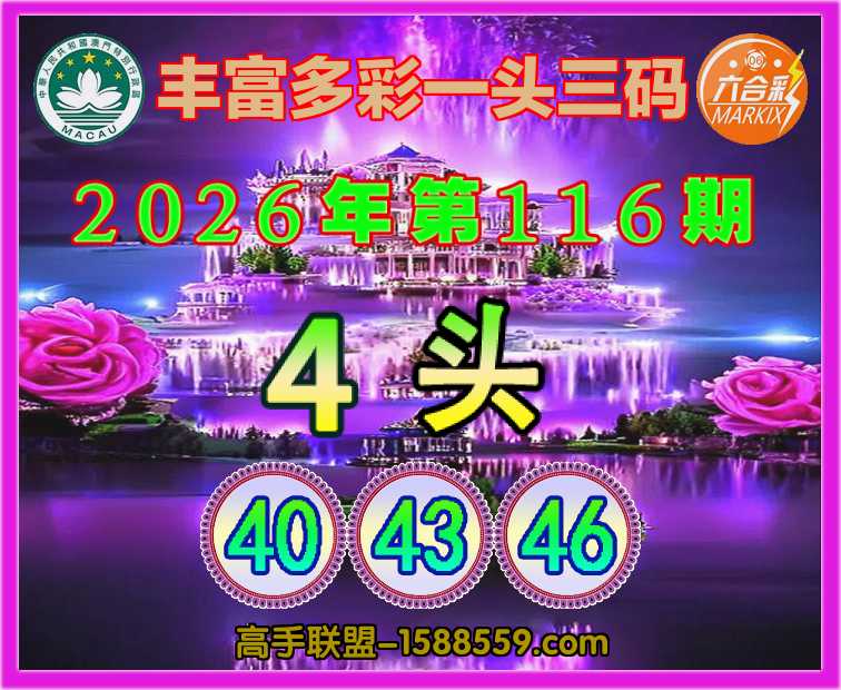 116期:【丰富多彩】 ♣️一头三码♣️【4头主:40.43.46】开:鸡22