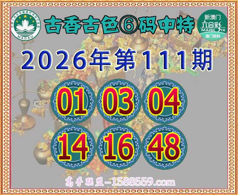 111期: 🧩《古香古色》 🧩⑥码中特🧩【01.03.04.14.16.48】开:01