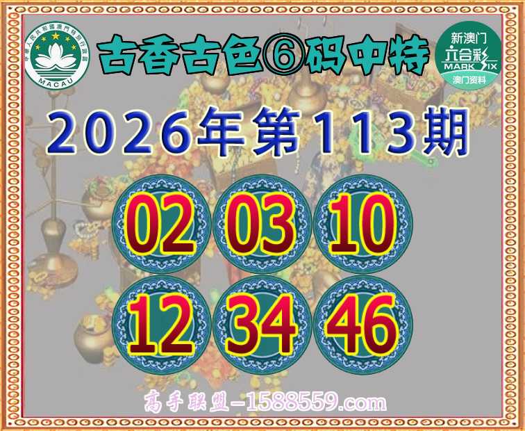 113期: 🧩《古香古色》 🧩⑥码中特🧩【02.03.10.12.34.46】开:02