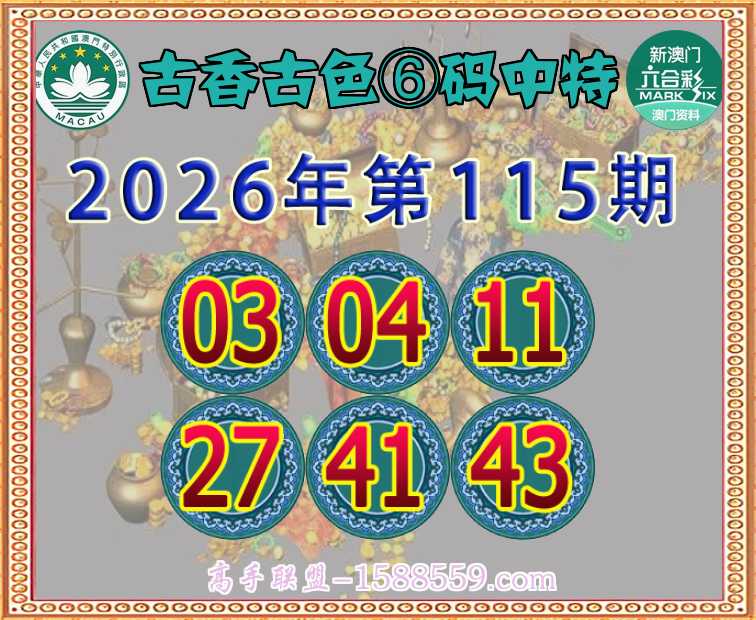 115期: 🧩《古香古色》 🧩⑥码中特🧩【03.04.11.27.41.43】开:04