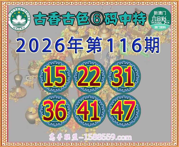 116期: 🧩《古香古色》 🧩⑥码中特🧩【15.22.31.36.41.47】开:22
