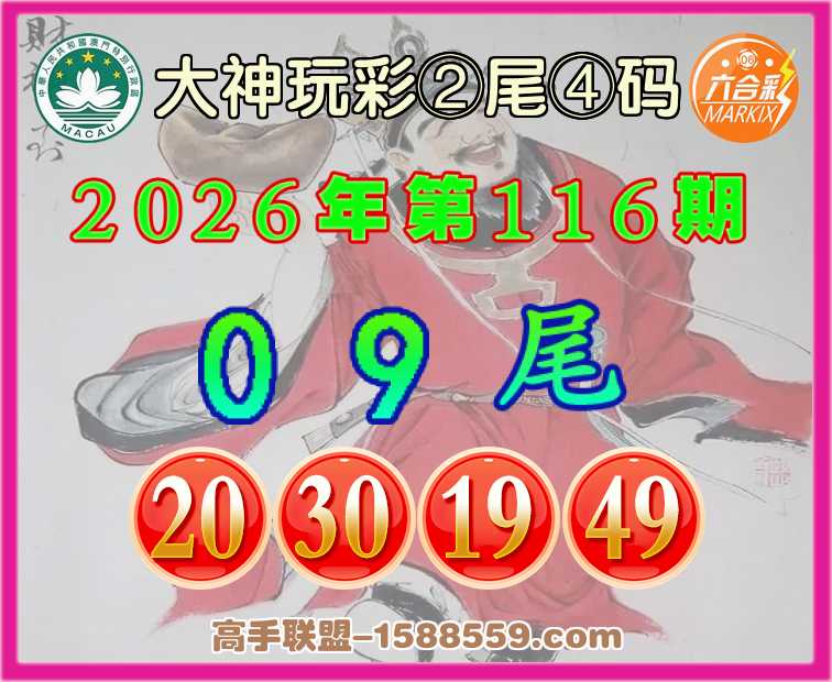 116期: 大神玩彩 👛②尾④码👛【09尾主:20.30.19.49】开:22